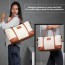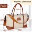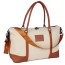 Elevate your daily commute or weekend getaways with this stylish canvas duffle bag that perfectly balances form and function. The spacious main compartment easily accommodates your essentials, while the premium leather trim and accents add a touch of sophistication to the classic design. Featuring both top handles and an adjustable shoulder strap, this versatile bag offers multiple carrying options for your comfort. The durable canvas construction in a neutral cream colour, complemented by cognac leather details, creates a timeless aesthetic that pairs well with any outfit. The bag's thoughtful design includes exterior pockets for quick access to frequently needed items, making it an ideal choice for both travel and everyday use. The roomy interior provides ample space for clothing, accessories, and personal items, while maintaining a structured silhouette that looks smart in any setting.