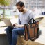 The messenger bag features a wide shoulder strap that eliminates shoulder fatigue. The shoulder strep can be easily removed when not required, and effortlessly adjusted lengths. The bag can be carried by the handle, worn on shoulders, and positioned across body.