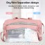 The dry and wet separate pocket provides exclusive pockets for toiletries and wet towels, a good choice for sports gym tote bags.