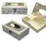 Inner material: wood and outer material: gold coloured thick aluminium -sheet. Dimension: 22.5 x13.5 x 7 cm(l x b x h). Decorated by: oxodised work gold colour (Washable Coloured Wax)