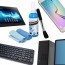 Brand: RiaTechCompatible Devices : Laptops , Mobiles , LCD , LED , Computers , TV , KeyboardDescription :Air Blower + Top Quality 4 Pieces Cleaning Kit supplied with High quality cloth to clean your LCD LED properly. Unique solution easily removes dirt, dust, and stubborn fingerprints Included soft, reusable microfiber cloths and keyboard brush wipes cleanly without scratching your sensitive electronics Perfect for TVs, computer monitors, tablets, cell phones, digital cameras or any similar electronics with a screenCleaning Brush For Keyboard Dust Remover:Can be used on digital camera sensors, lenses, telescopes, computer keyboard, microscopes,