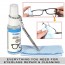 - LENS CLEANER SPRAY. Our pocket-sized glasses cleaner uses cleaning agents that are tough on dirt and oil but gentle on lenses to whisk away dirt. Just sprit and let the formula do its magic! You'll easily be able to get your glasses lenses looking crystal clear.